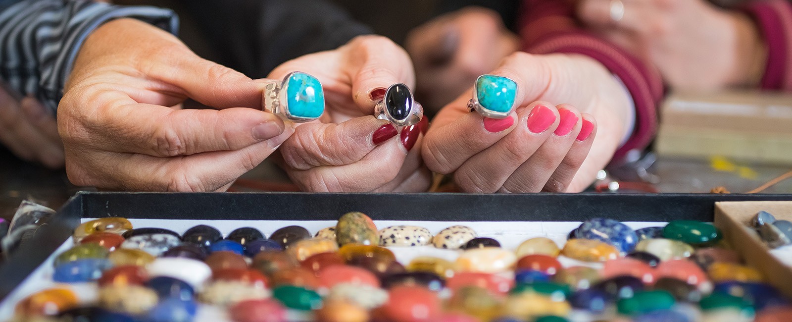 Learn one of the oldest forms of jewelry making by creating your own ring, bracelet or pendant in the silversmithing class. Learn to set a semi-precious stone in sterling silver and bring your treasure home.