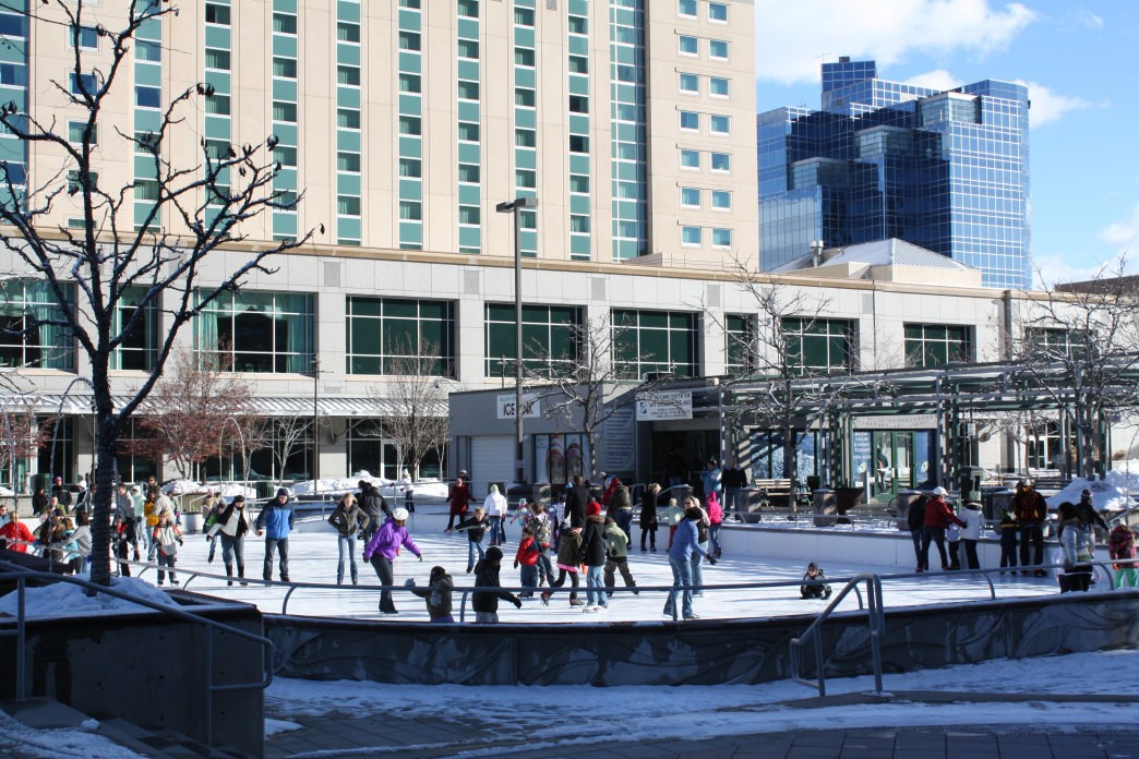 The Gallivan Center Ice Rink offers skating amid the building in downtown Salt Lake City. Todd McKinley