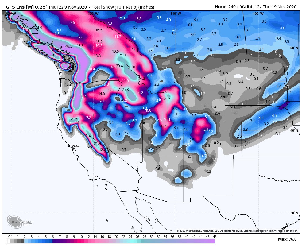 As we head into the second half of the month, there are indications that the storms will continue. This will help us build a substantial early season base which will be critical in getting terrain open. Utah is known for having some of the best early season conditions in the world, and this season does not look to be any different.