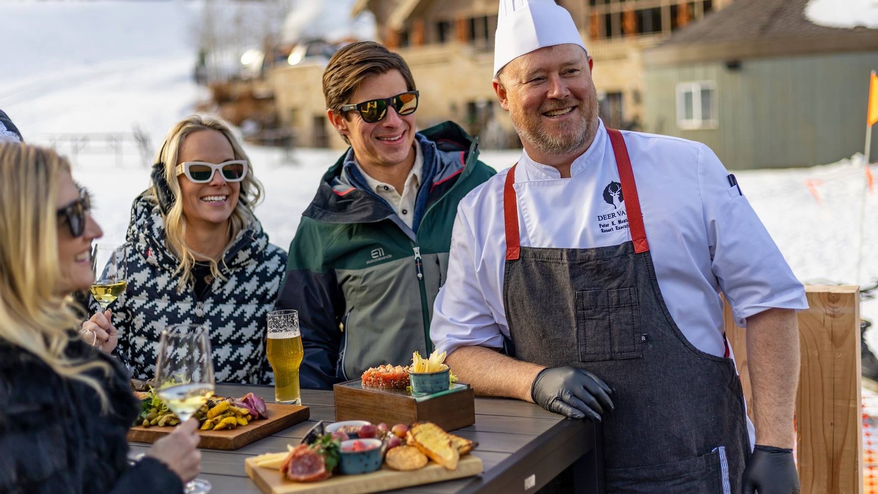 Experience Deer Valley's award-winning cuisine at Royal Street Café with stunning views at 8,100 feet, just below Bald Mountain.