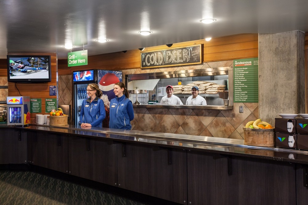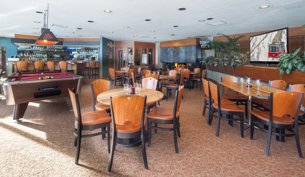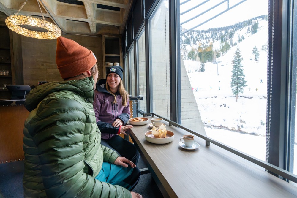 The Cliff Lodge's slopeside restaurant serves gourmet coffees, pastries, and breakfast, year-round.