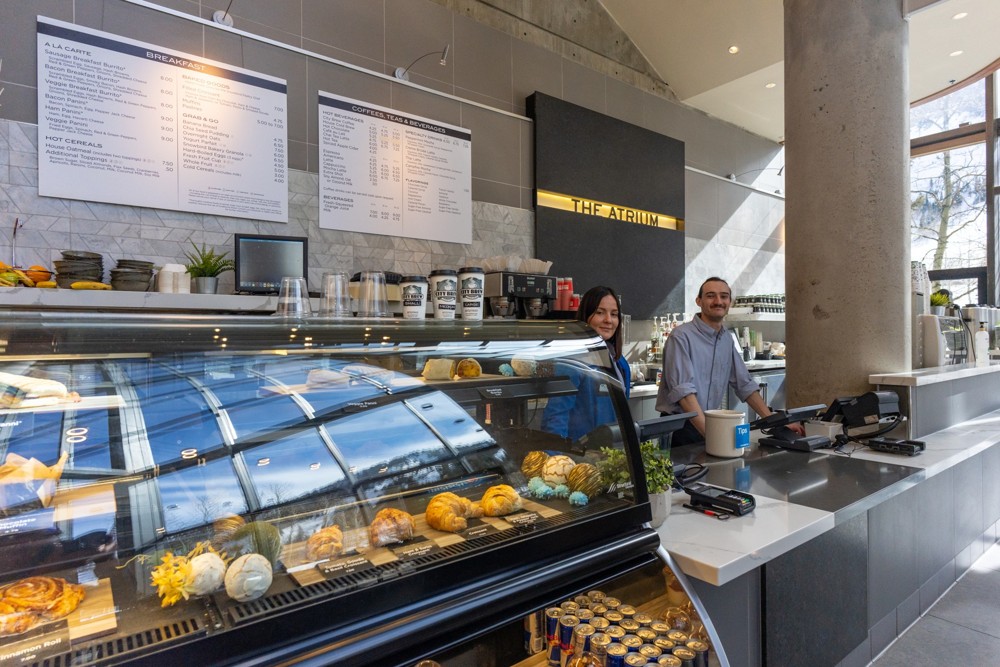 Jump-start your day with a cup of coffee, latte or cold brew from local roaster, Millcreek Coffee, or create a fresh-made smoothie from our list of fruits, vegetables, nutrients and protein powders.