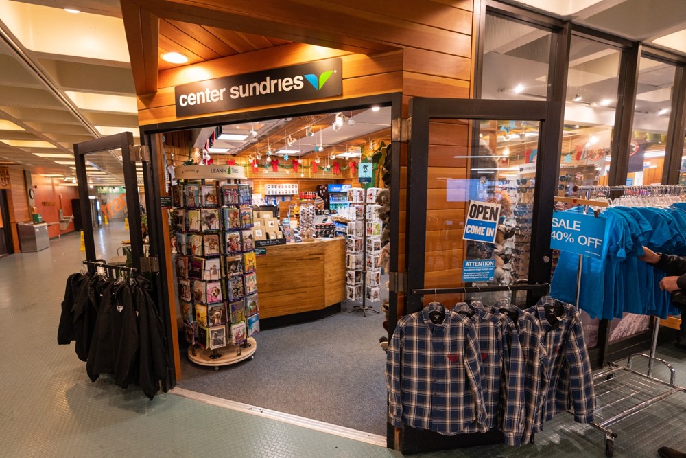 This shop houses a U.S. Post Office and retails sundries, newspapers, books, gifts, souvenirs, postcards, t-shirts, sweatshirts, snacks, soft drinks and beer, year-round.