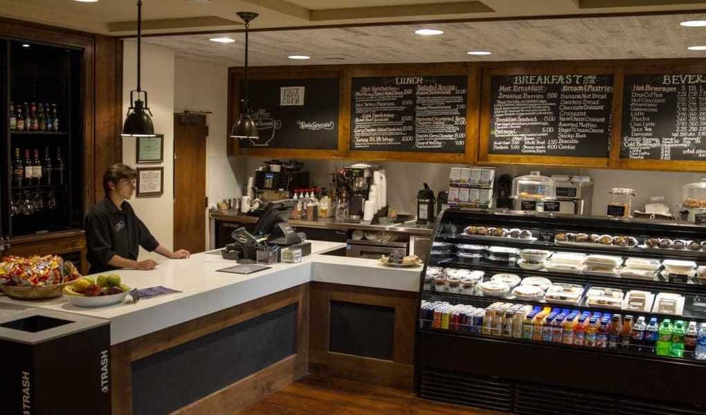 Start your morning with a locally roasted coffee, hot chocolate, herbal tea or a pastry - just steps from the snow.