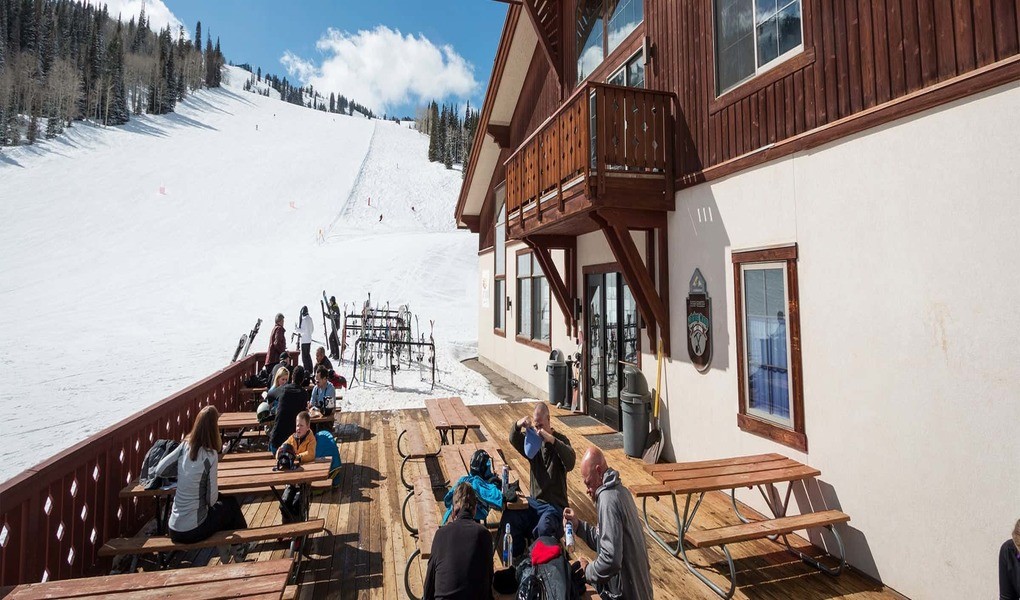The sun deck at Last Chance Southwest Grill at Solitude Mountain Resort, Utah.