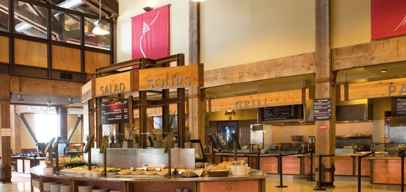 Favorites are served on the grill, fresh-baked pizzas are coming out of the oven, fresh sandwiches are being carved, a crepe station keeps things interesting, and a salad/soup/baked potato bar makes