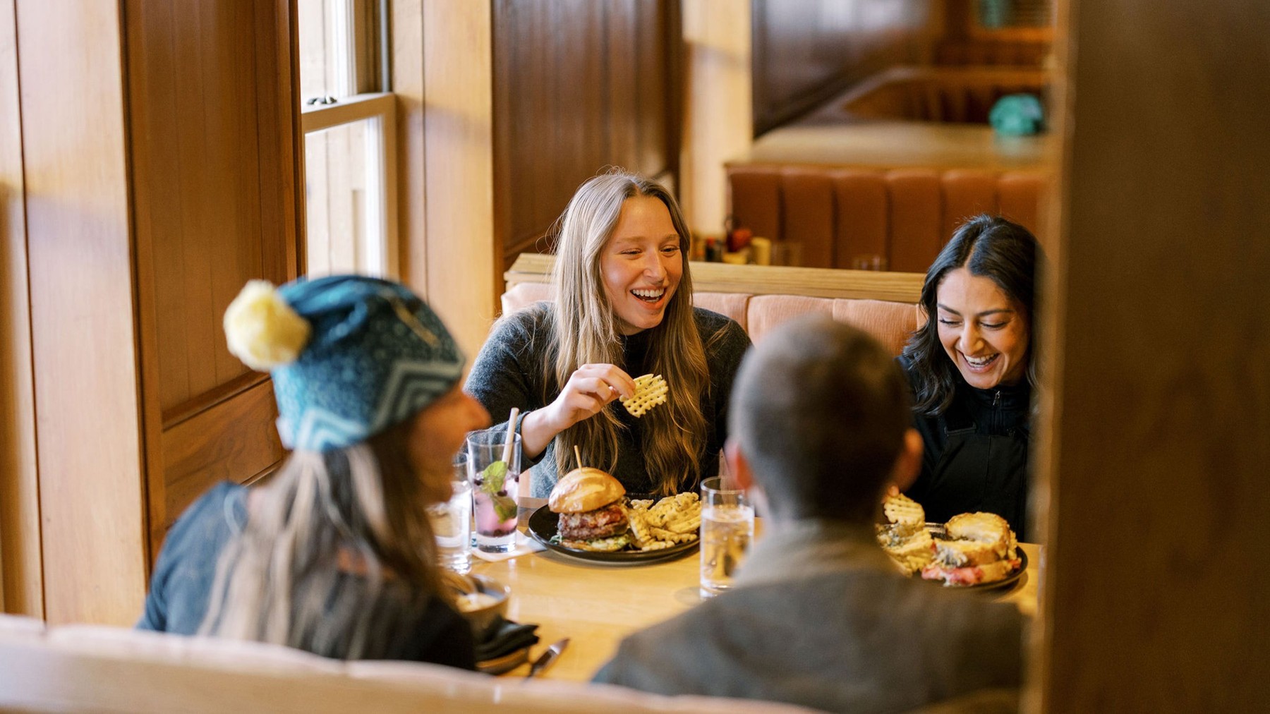 Step back in time at this vintage 21+ lounge in Silver Lake Lodge offering elevated pub fare, handcrafted cocktails, and indulgent desserts. A favorite for après ski and mountain nostalgia.