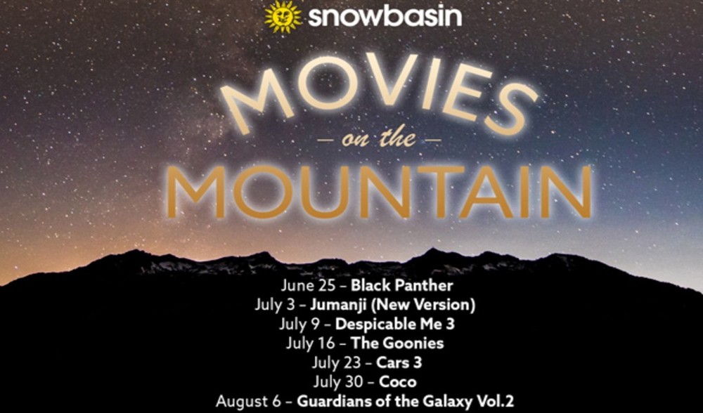 Join Snowbasin Resort for the second year of free Movie on the Mountain Series. For seven Mondays throughout the summer, Snowbasin invites families to watch a free feature motion picture under the stars in the cool Wasatch Mountain air on Earl’s Lodge Lawn. Bring your blankets and chairs and enjoy ‘dinner and a movie’ in the great outdoors. Food and dinner specials will be available – until the show starts at dusk (around 9: 00 pm). The menu will feature all the trappings of a theater experience with Snowbasin flair. After the movie begins, snacks and treats will be available until the film ends.