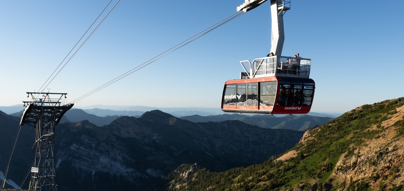 First opened in 1971, Snowbird's Aerial Tram whisks passengers along a 1.6 mile cable and up 2,900 vertical feet during the 10-minute trip to the top of Hidden Peak.