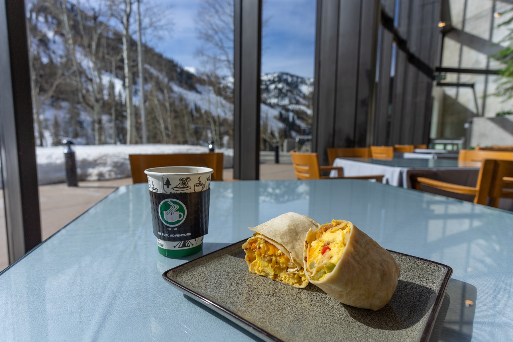 Creekside Café & Grill sits at the base of Gad Valley and serves coffees, baked goods, burgers, burritos, beer and more.