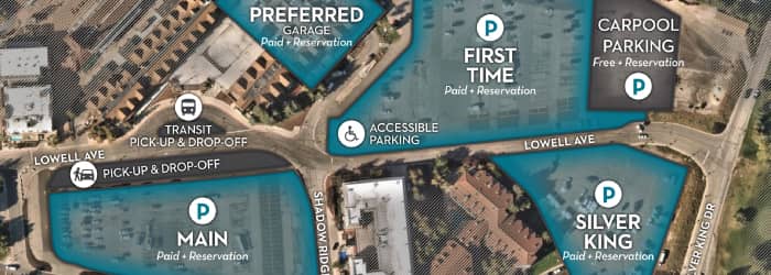 Advanced parking reservations may be made through the ParkWhiz App for Snowbird's parking areas in the Lower Gad Valley, Pond or Chickadee Preferred Parking Lots or at the Snowbird Center Valet. Day-of paid valet parking is available on a first-come, first-served basis at the Snowbird Center and The Cliff Lodge. Day-of paid parking is also available (while spaces last) at the Lower Gad Valley lot. Note: 2025-26 Daily Paid Parking will be priced dynamically based on demand.